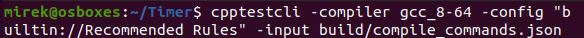 We’re now ready to run the static analysis using the generated compile_commands.json file. A great advantage is that we can append the .json file directly into the command line interface of the Parasoft C/C++test standard product: